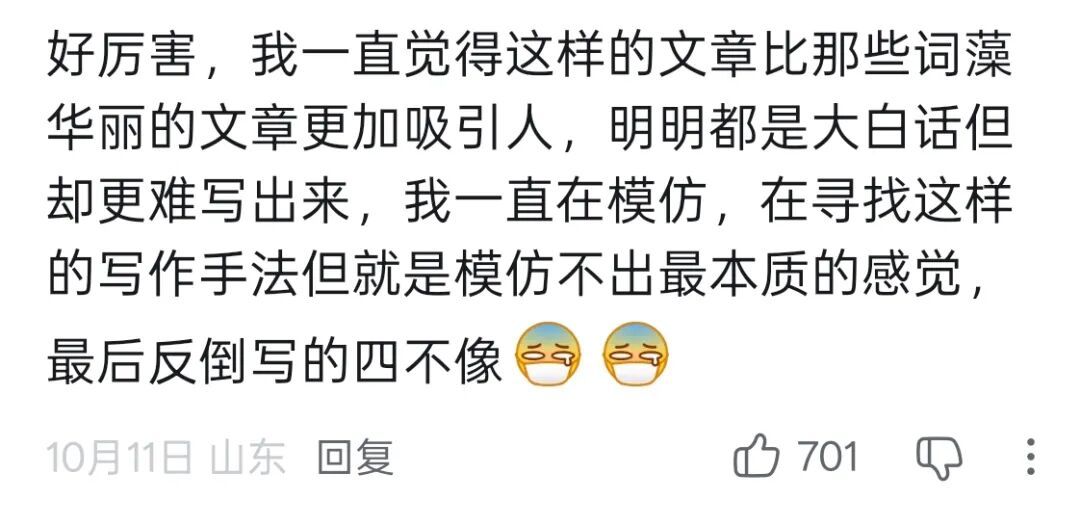“up好会描述”“文体的最高等手法即是白描”“因为经验是语文的一部分”……上万条褒贬里,是来自山南海北的共识。